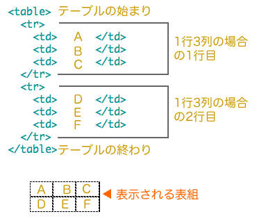 まずテーブル組というのは以下のような感じでソースが出来上がる。